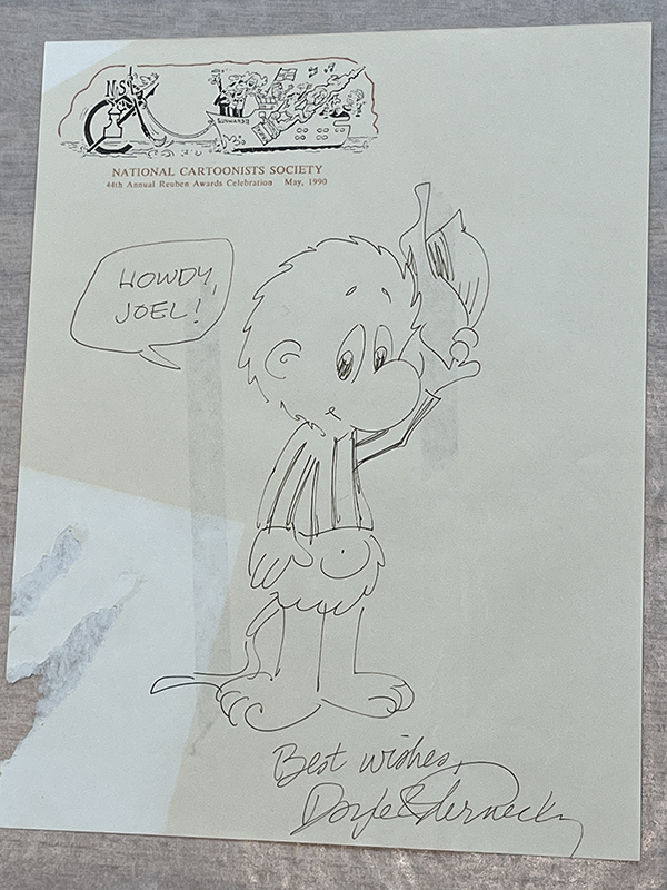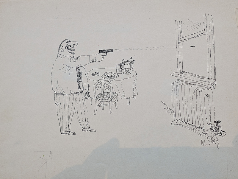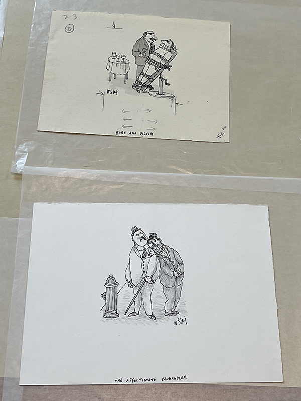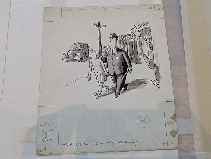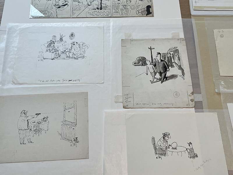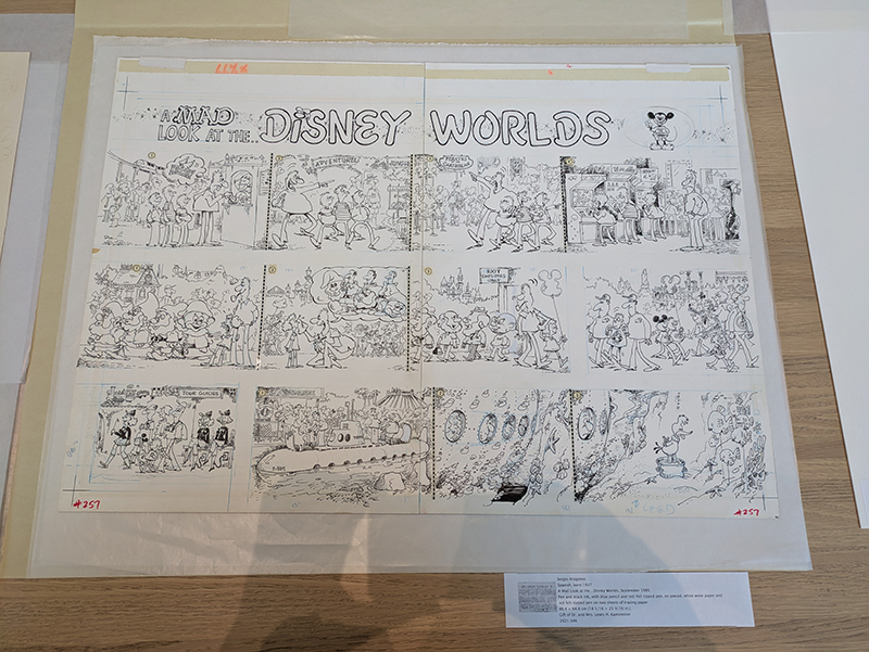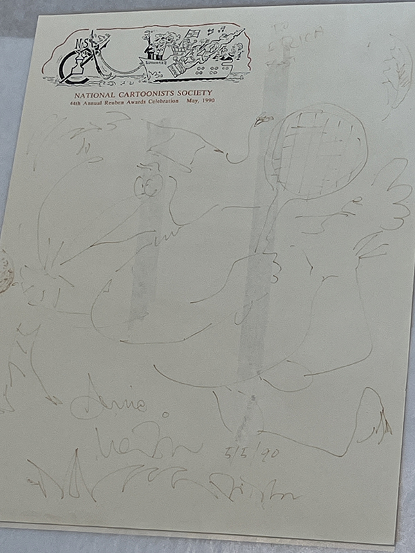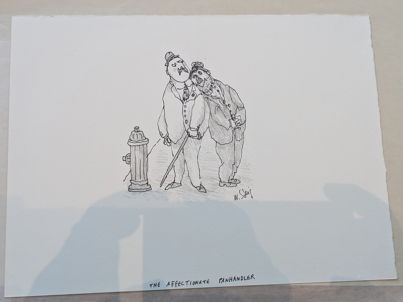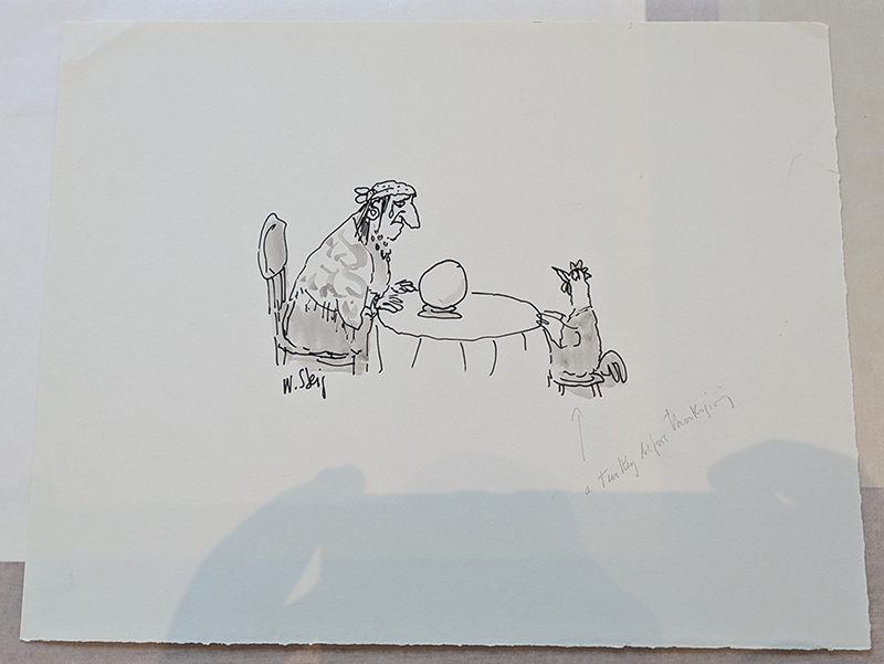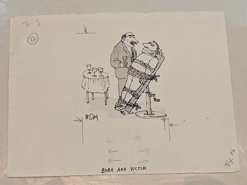 A particular highlight was the visual timeline of William Steig’s work. Best known today for Shrek, Steig’s career spanned decades. His early pieces from the 1950s featured clean, classic linework with a light, whimsical touch. As the collection progressed into his later work from the 1980s, attendees noted the shift—his penwork became grittier, his humor more biting, and his compositions more daring. It was a masterclass in artistic evolution and a testament to a cartoonist who never stopped pushing the boundaries of his craft.