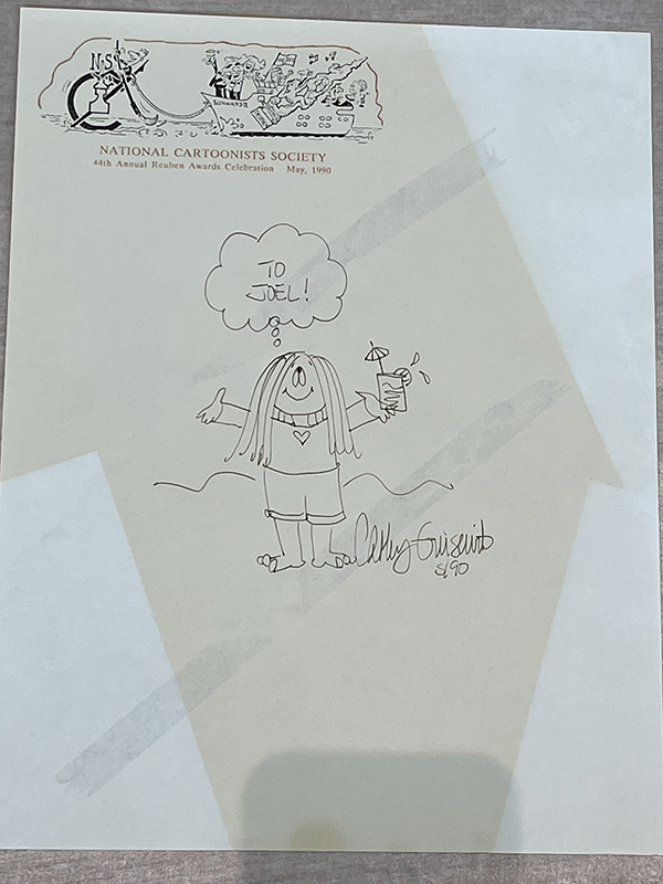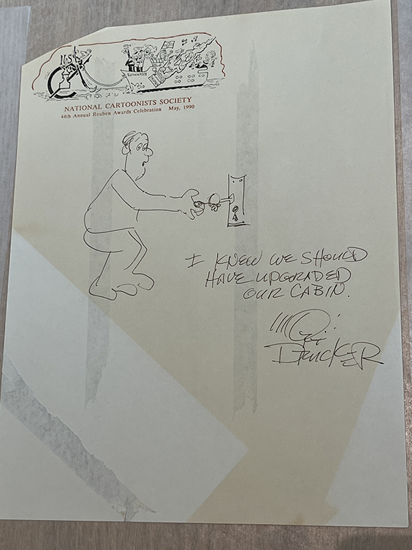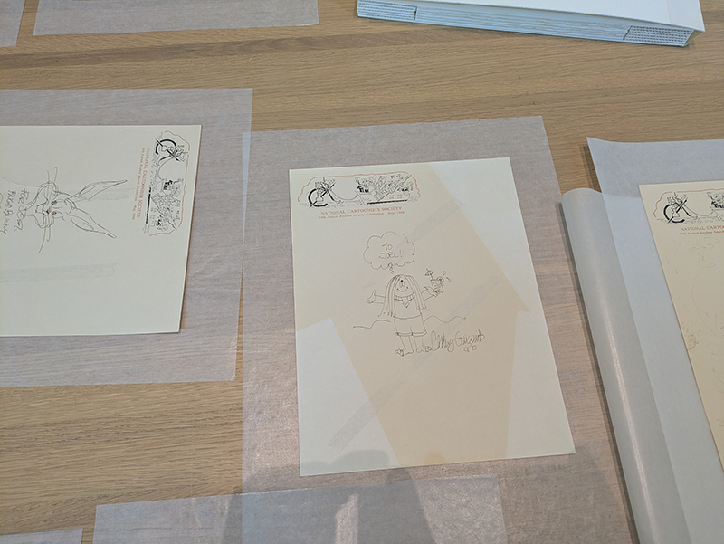 Though the museum’s famed lions on Michigan Avenue greeted the city’s usual throngs of art lovers, this visit was anything but ordinary. Behind the scenes, nestled in the Print and Drawing Study Room, a curated collection of cartoon art—rarely on public display—awaited the NCS members. From satirical sketches to Sunday funnies, the selection highlighted the evolution and power of the cartooning craft.